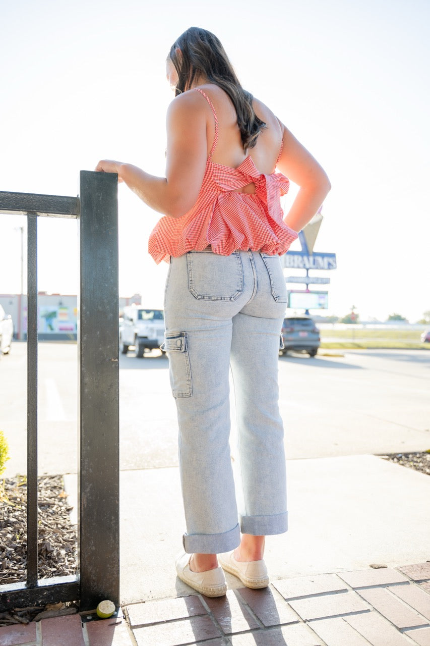The most perfect Summer tank! The Liberty Tank has a bubble hem, and a tie front back, so cute for Summer. Runs true to size, model wearing a M.
